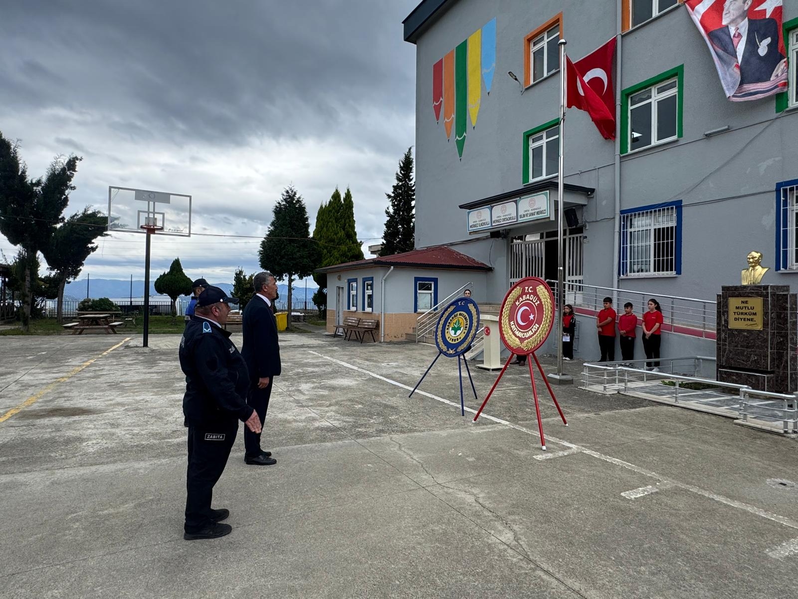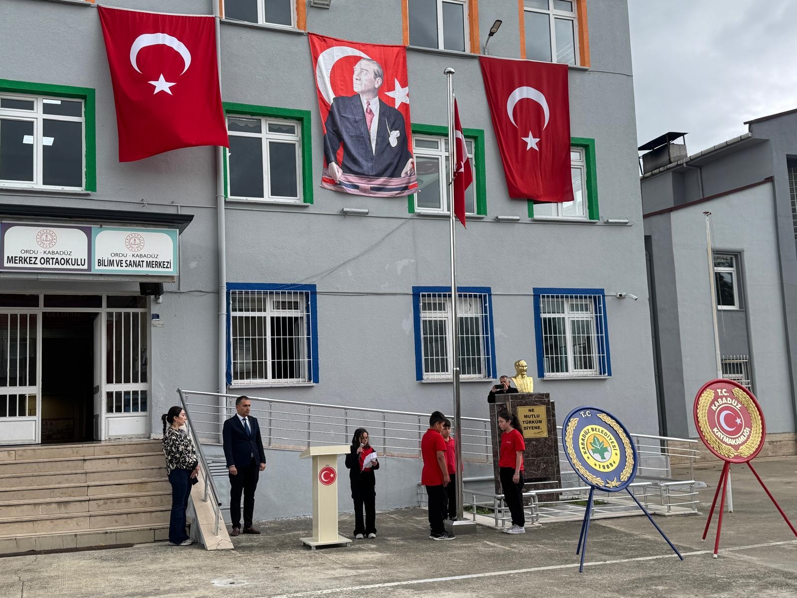 Merkez İlkokul/Ortaokulu bahçesinde bulunan Atatürk Anıtı önünde düzenlenen Anma Programına; Kabadüz Kaymakam Vekili Sayın Esra DEMİRTAŞ, Kabadüz Belediye Başkanı Sayın Yener KAYA, İlçe Milli Eğitim Müdürü Sayın Hakan UZUNÇAKMAK, ilçemizde bulunan tüm protokol üyeleri ve saygıdeğer gazilerimiz katıldı. Anma Programı, Kaymakamlık ve Belediye Başkanlığı çelenklerinin Atatürk Anıtı'na sunulması ile başladı. Ardından Gazi Mustafa Kemal Atatürk başta olmak üzere aziz şehitlerimiz, ebediyete intikal etmiş bütün gazilerimiz anısına Saygı Duruşu'nda bulunuldu ve İstiklal Marşı'mız okundu. Merkez Ortaokulu öğrencisinin günün anlam ve önemi ile ilgili şiirini okumasının ardından tören şehit mezarlarına yapılan ziyaret ile tamamlandı.