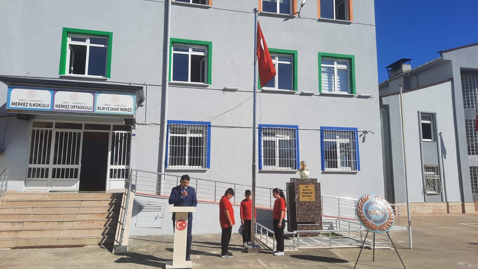 2025-2026 Eğitim Öğretim Yılı İlköğretim Haftası , Merkez İlk/Ortaokulu'nda İlçe Milli Eğitim Müdürümüz Sayın Hakan UZUNÇAKMAK , yönetici, öğretmen ve öğrencilerimizin katılımıyla, İlçe Milli Eğitim Müdürümüz tarafından Atatürk Anıtı'na çelenk sunulması, saygı duruşunda bulunulması ve İstiklal Marşı'mızın okunmasıyla başladı. İlçe Milli Eğitim Müdürümüz günün anlam ve önemini belirten konuşmasını yaptı. Öğrencilerin şiirlerini okumaları sonrasında, program sona erdi.